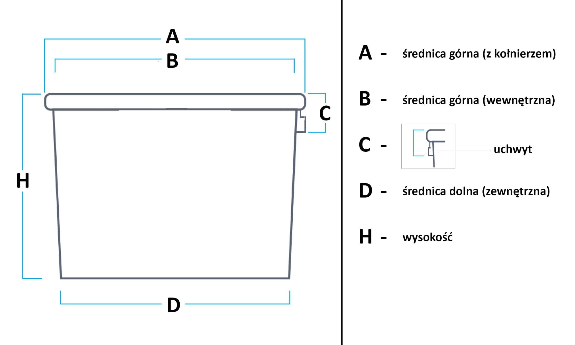 | Średnica górna (wewnętrzna): | 70,0 cm | (B) |