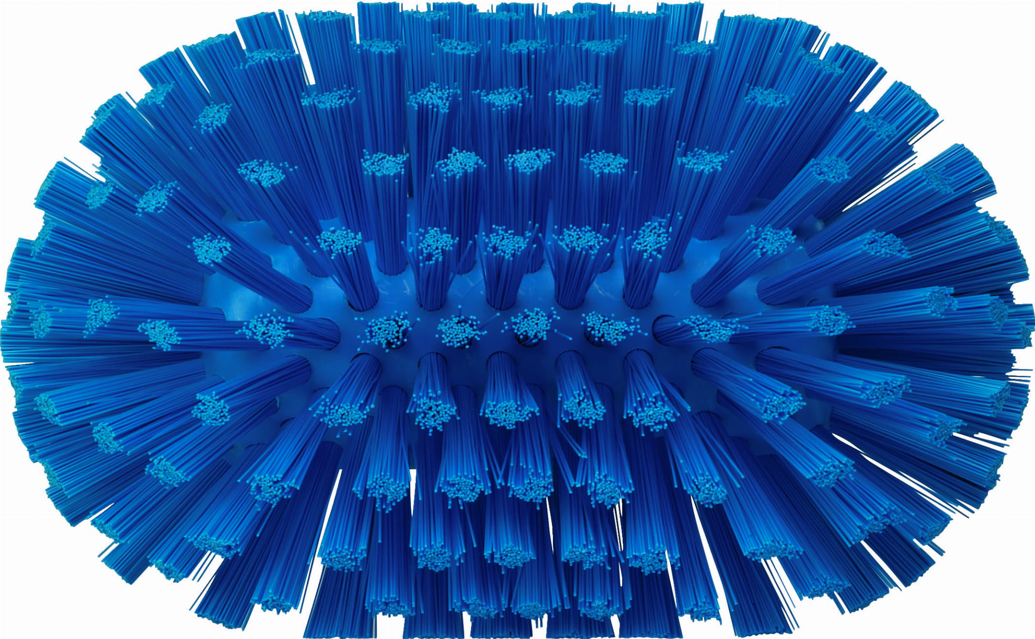 Owalna szczotka ze sztywnym włosiem, do szorowania wnętrza zbiorników, pojemników. Włosie ustawione dookoła główki myje zarówno dno jak i ścianki, ustawione pod kątem włosie dociera do zakamarków i szczelin. Odpowiednia także do mycia dużych kanałów ściekowych.