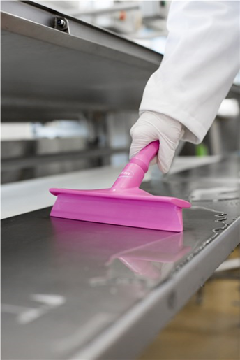 Higieniczna ściągaczka z elastycznym pojedynczym piórem. Wykonana z jednego kawałka, brak krawędzi do gromadzenia zanieczyszczeń. Odpowiednia do usuwania nadmiaru wody i odpadów przy produkcji spożywczej. Z mini stylem w komplecie.