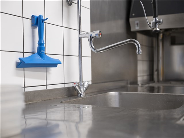 Wieszak ścienny Hi-Flex z polipropylenu przeznaczony do zawieszania narzędzi czyszczących.