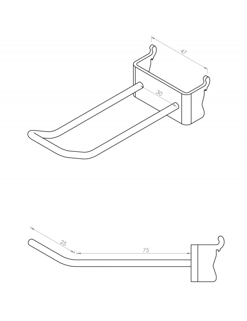 Wieszak ze stali nierdzewnej oczkowy do tablicy perforowanej pręt 5 mm 75 mm P8011