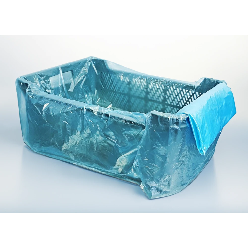 Dzięki konstrukcji dopasowanej do pojemników EURO E2, worki skutecznie zabezpieczają zarówno dno, jak i ściany skrzynki, ograniczając bezpośredni kontakt produktu z powierzchnią opakowania wielokrotnego użytku. To istotny element w kontekście systemów HACCP, szczególnie w obszarach surowcowych i chłodniczych.